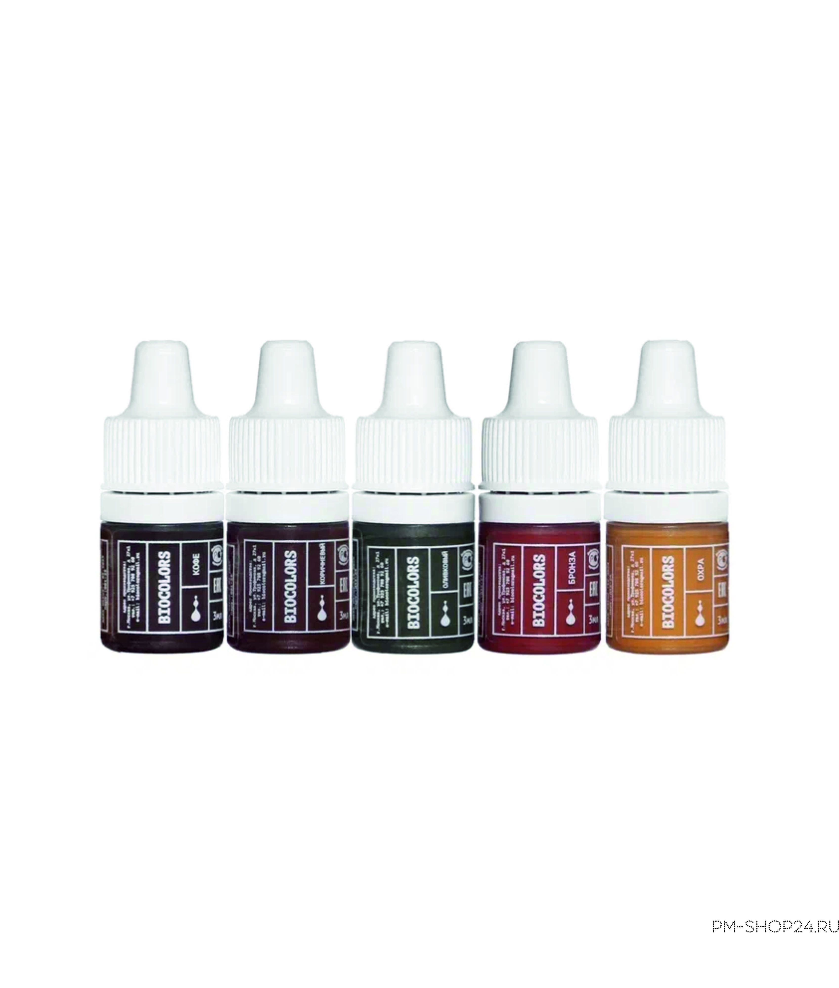 В состав сета входит вся палитра-конструктор по 3 мл: кофе, коричневый, оливковый, охра, бронза.