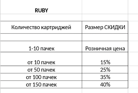 Дизайн картриджей спроектирован в USA эксклюзивно для бренда Ruby.