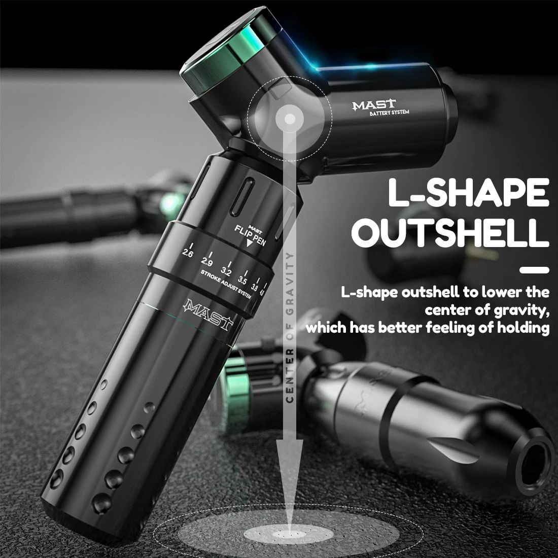 Y-образный корпус для уменьшения центра тяжести; предназначен для питания тату машинок с RCA разъёмом;